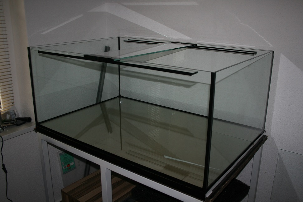 Das Becken wird mit einem Eck-HMF betrieben mit einer Matte in 10ppi und einer Tunze e-jet mit1200l/h